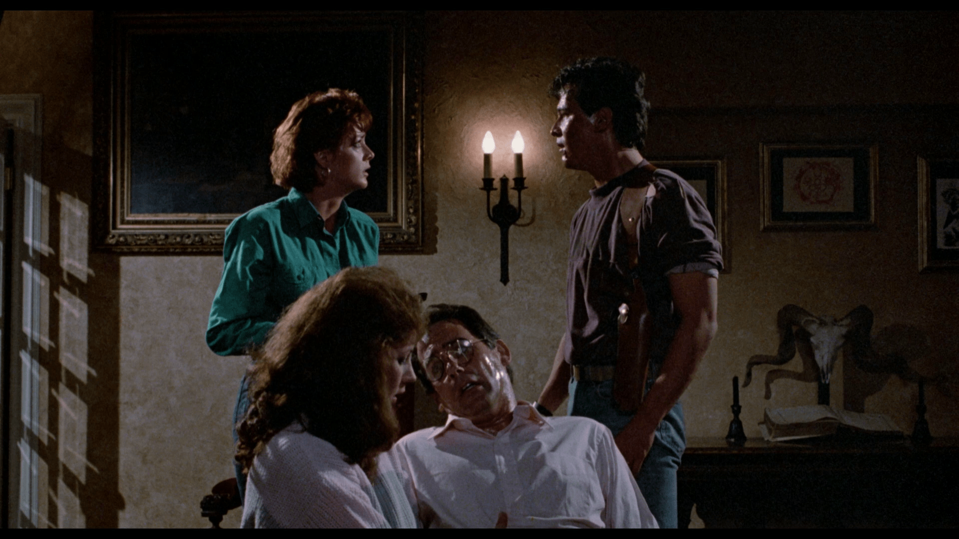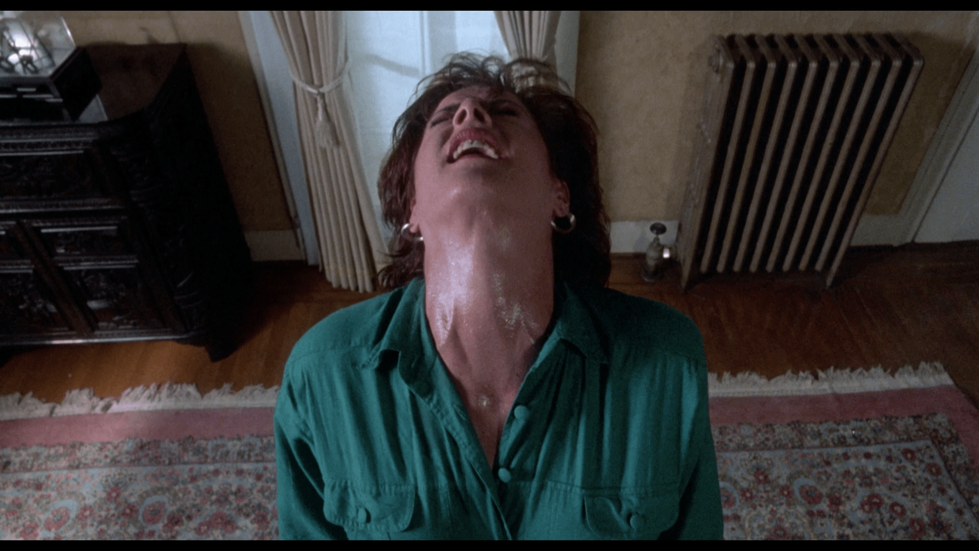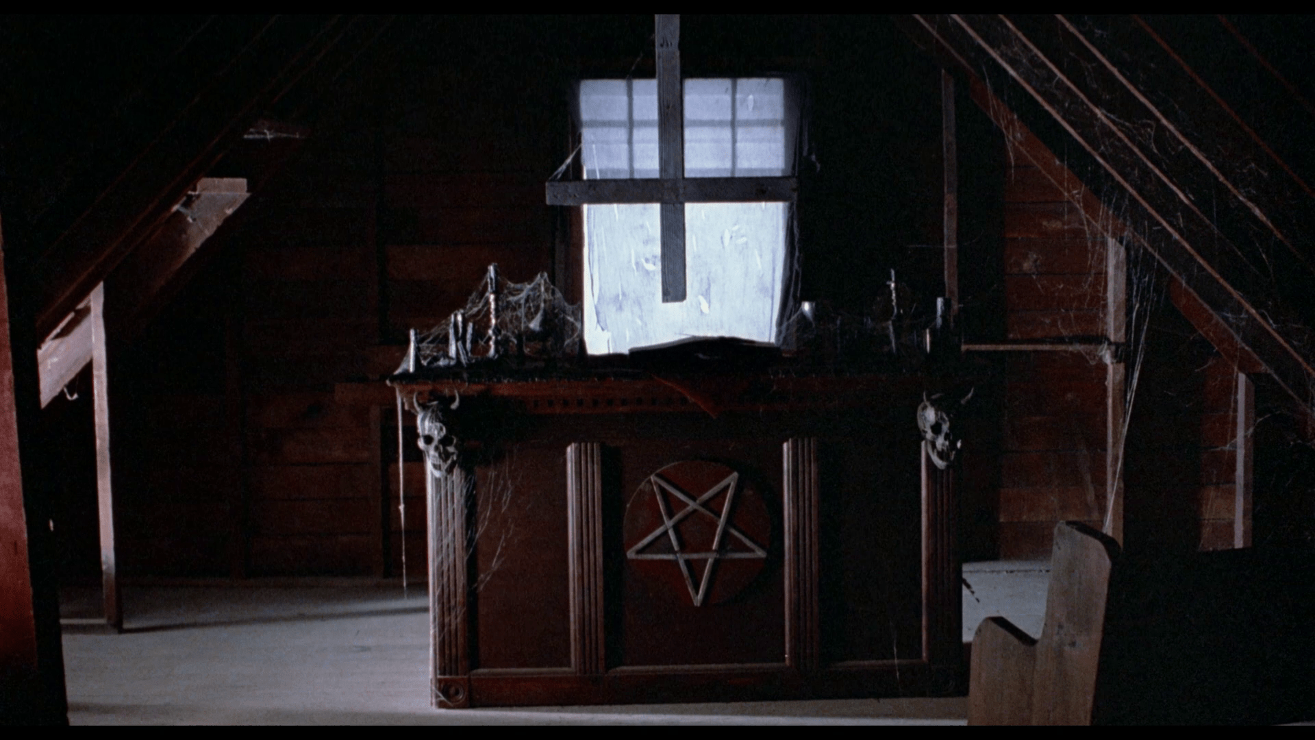 Witchtrap is a pretty typical example of the straight to video market of the time. Reliant on the “star power” of it’s lead scream queen, Linnea Quigley, and goodwill from the directors previous films (Witchboard and Night of The demons), it does a pretty good job of luring you in. Right from the off, it is clear that there wasn’t a whole load of money available to the films makers. Sets are cheap, dressed in a perfunctory manner. The lighting is flat and television like. The camerawork is pretty basic, but does feature a few fancy shots to add value.