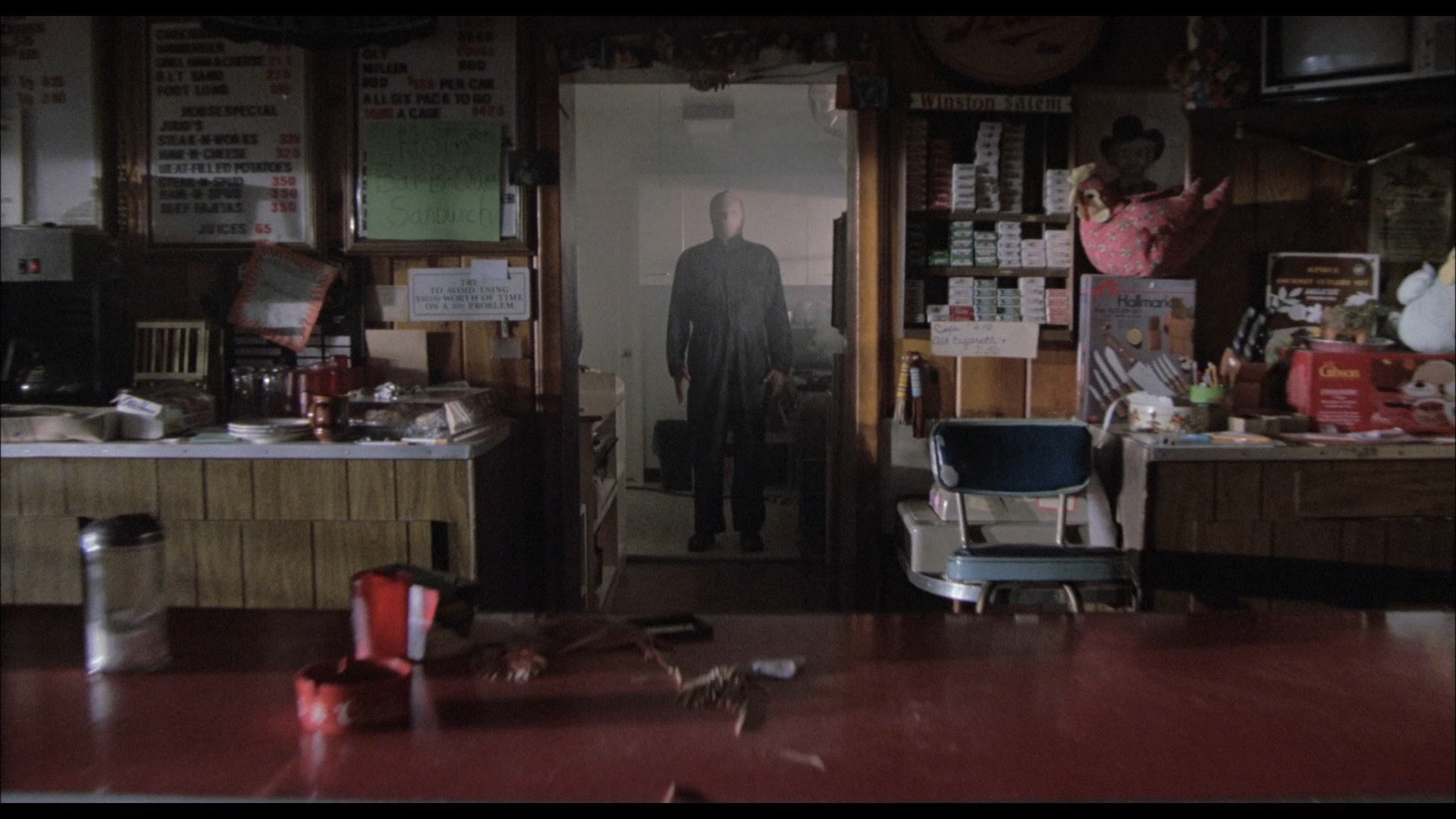 Halloween 4 takes the slasher template of the 1980s and fits right into it. Gone are the long, eerie passages of Carpenters original. Instead we see a standard slasher film, with regularly paced kills, and archetype characters. The only thing that differentiates this from the plethora of other slashers out there at the time is the Halloween brand and the still iconic image of it’s killer villain. Michael is still and unstoppable, emotionless monster here. His blank mask a visual depiction of his remorseless killer instinct.